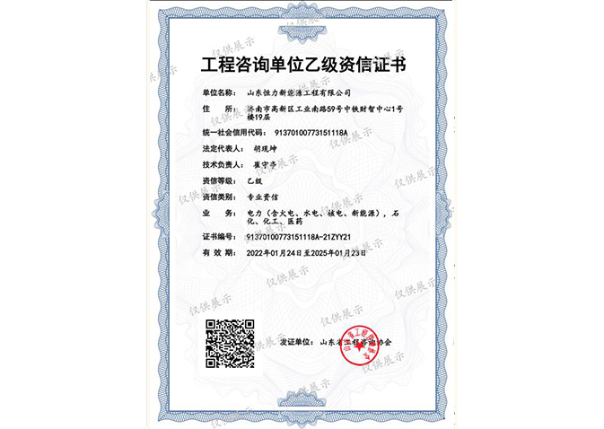 工程咨詢單位乙級(jí)資信證書