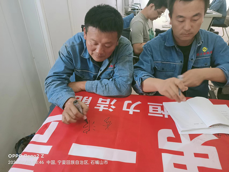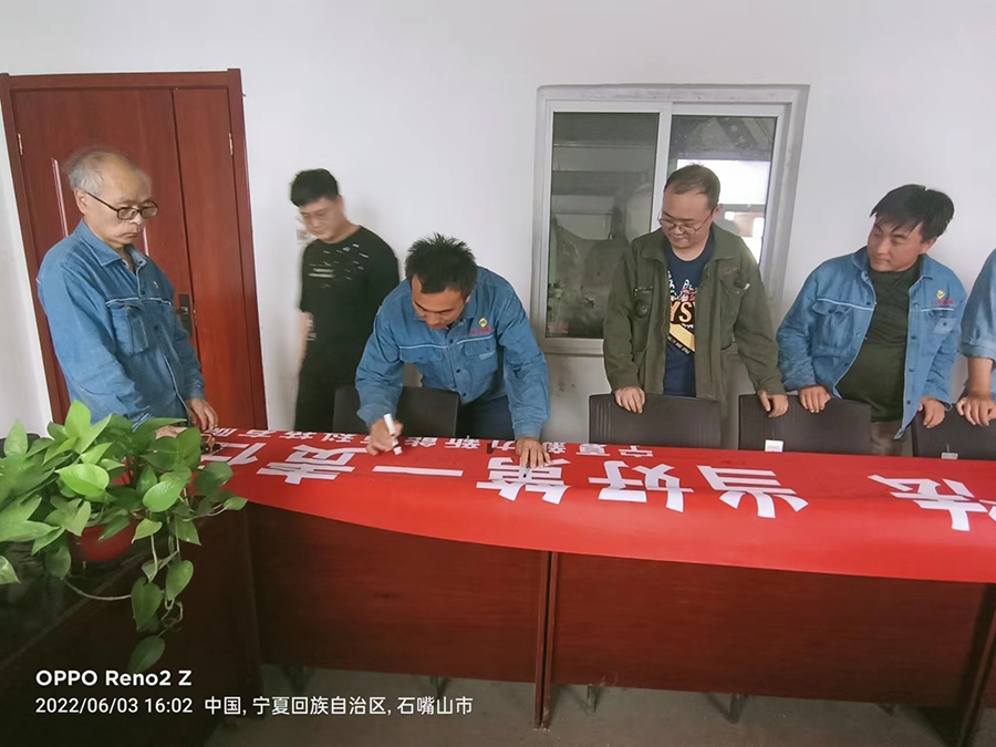 寧夏新力生產(chǎn)部組織運行人員在安全條幅簽字。