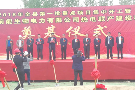 4月12日,由我公司承建的梁山前能生物電力有限公司熱電聯(lián)產(chǎn)總承包項(xiàng)目隆重舉行開工奠基儀式。