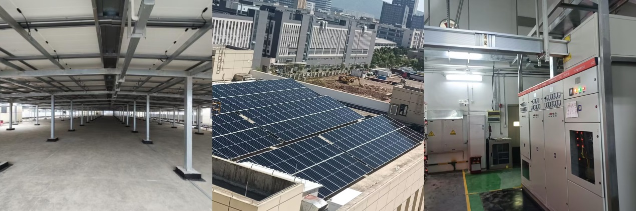 本項目是集光伏發(fā)電與電化學儲能于一體的綜合性清潔能源工程,充分利用企業(yè)既有車間、倉庫樓頂空間,合理鋪設光伏組件,并配套建設儲能一體柜,形成了“光儲一體”的協(xié)同系統(tǒng),有效提升能源利用效率與供電可靠性。